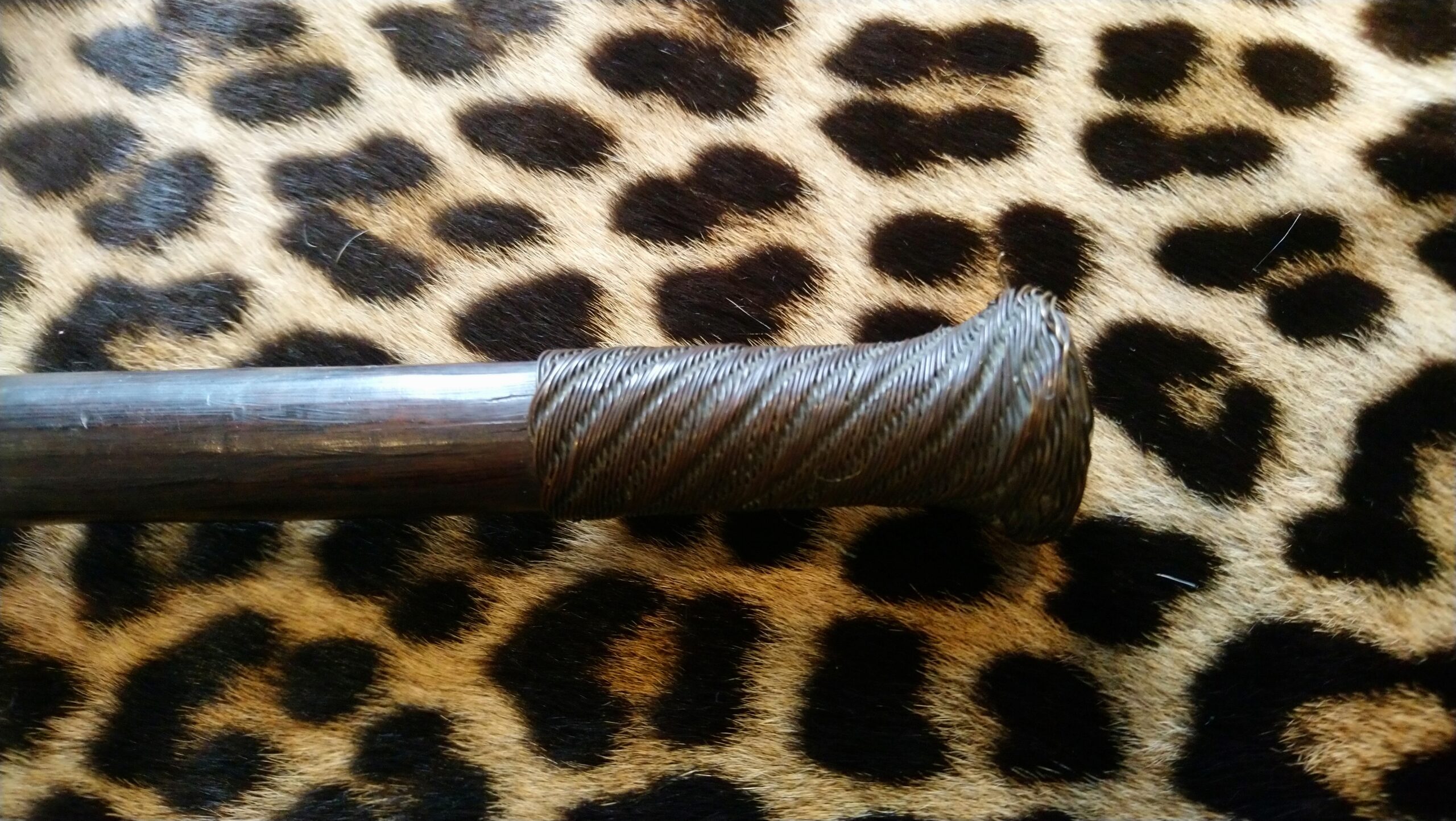 • Wire Binding (Sambo): The shaft is meticulously bound with traditional 19th-century wirework. This binding provides both structural reinforcement to the hardwood and a high-status aesthetic. The tight, consistent coiling is characteristic of the finest Zezuru or Manyika craftsmanship.